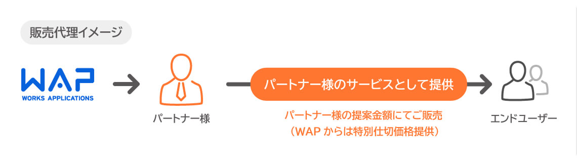 パートナー様が弊社ソリューションを仕入れお客様に販売頂く方法です。パートナー様と弊社との直接契約、お客様で再販売契約となります。